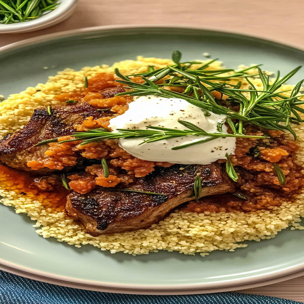 Indulge in tender lamb chops marinated with fragrant rosemary and garlic, paired with fluffy couscous for a quick, elegant meal perfect for any occasion.
