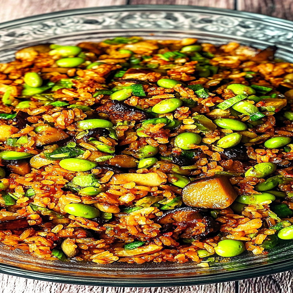 Crispy Gochujang Rice Salad with Mushrooms & Edamame