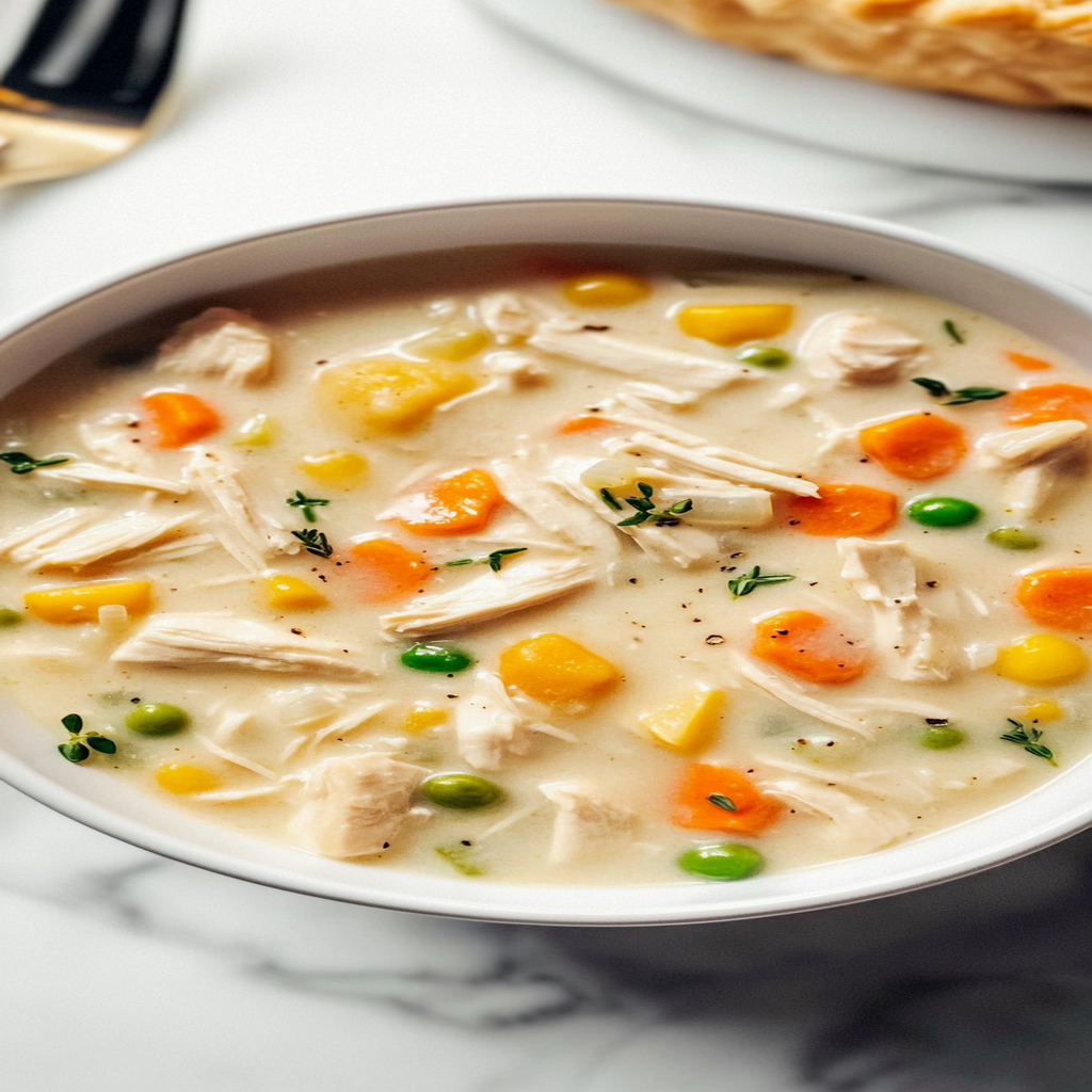 The aroma of Healthy Chicken Pot Pie Soup wafts through the air, wrapping you in a warm embrace that feels like a big, cozy hug. Picture this: tender chunks of chicken swimming in a creamy broth, mingling with vibrant veggies that dance on your palate. Each spoonful brings a rich medley of flavors, from savory herbs to the comforting taste of home. You can practically hear the soup whispering sweet nothings about its creamy goodness and how it will make all your cold days instantly better.