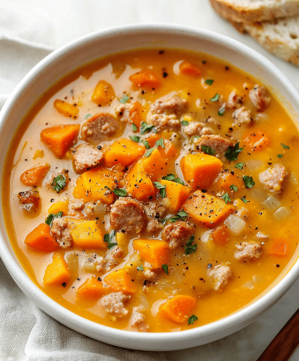 Warm your soul with this comforting Sweet Potato Sausage Soup, featuring tender sweet potatoes and a blend of spices that create a heartwarming dish perfect for chilly days.