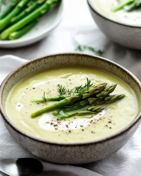 To make a delicious Cream of Asparagus Soup, you will need fresh asparagus, onions, garlic, vegetable or chicken broth, heavy cream, butter, salt, and pepper. Optional ingredients include herbs such as thyme or dill for added flavor. Ensure the asparagus is tender and fresh to enhance the soup’s natural sweetness. Using high-quality broth will also contribute to a richer taste. This recipe is simple yet allows room for creativity with additional spices or garnishes.