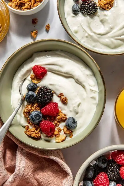 Transfer to bowls and top with fresh fruits, nuts, or whatever tickles your fancy! Enjoy every creamy bite while basking in the glory of having made yogurt from scratch!