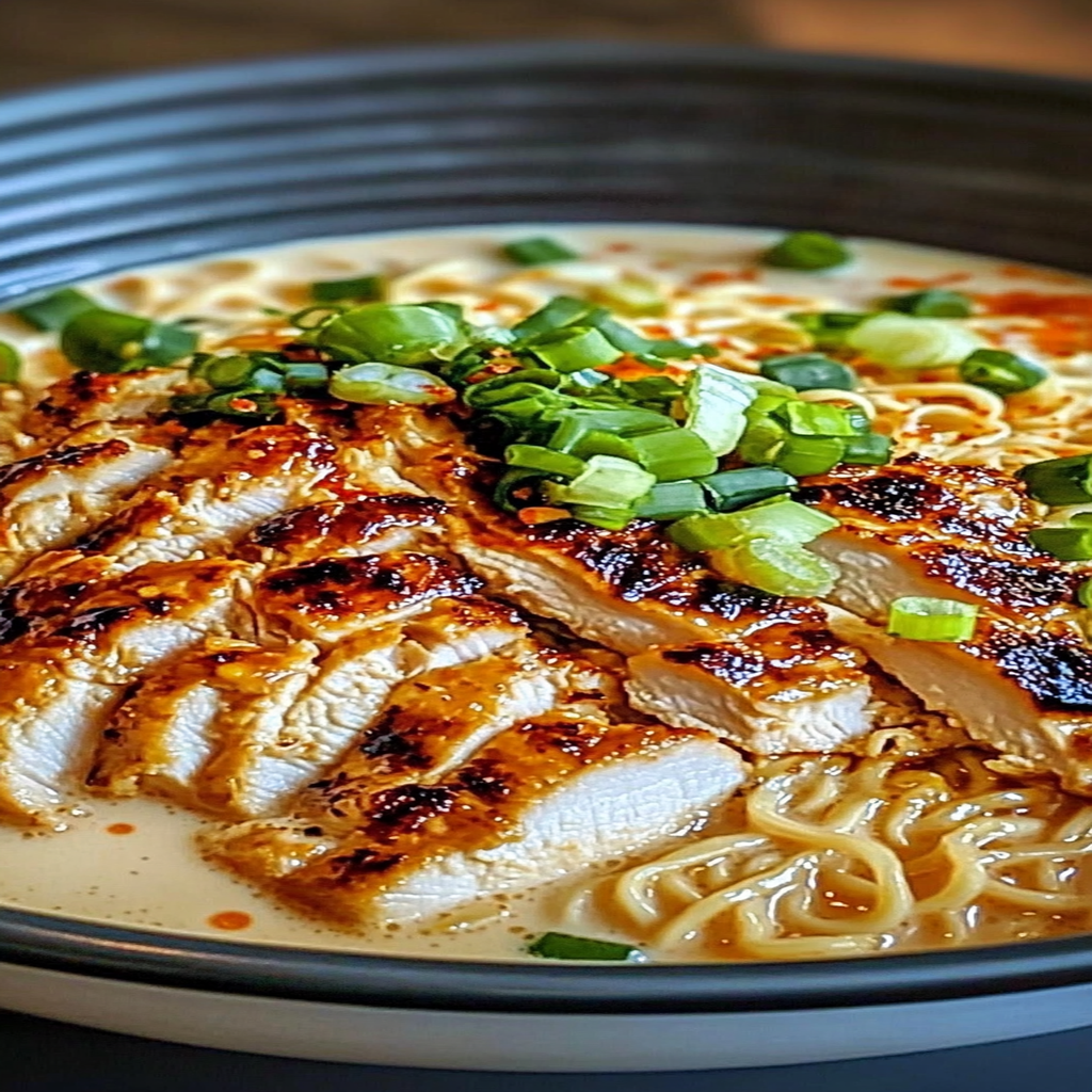 Enjoy a bowl of Fiery Chicken Ramen with Creamy Garlic Sauce—a spicy, comforting dish that combines tender chicken, rich broth, and creamy sauce for an unforgettable meal.