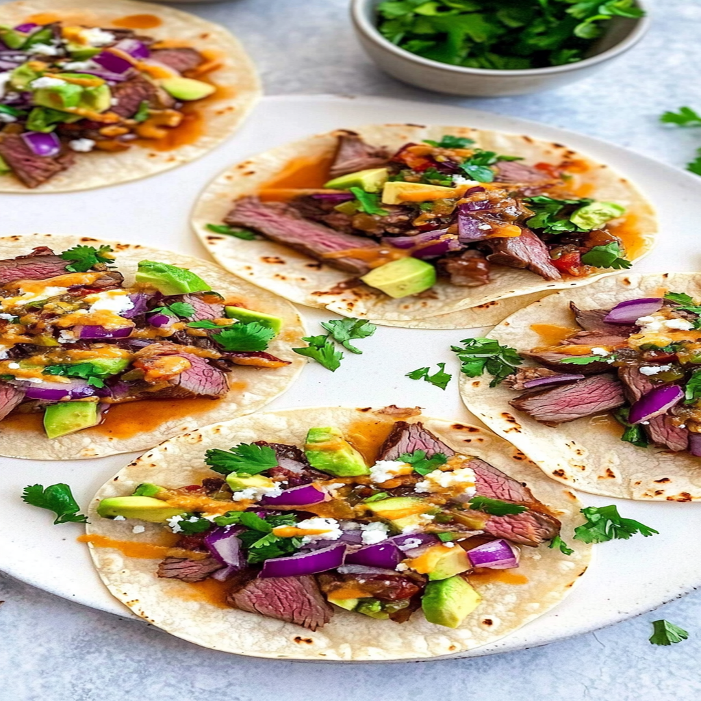 Store leftover tacos in an airtight container in the fridge for up to three days. To reheat, simply warm the steak on the stovetop or microwave, then assemble fresh tacos with your desired toppings.