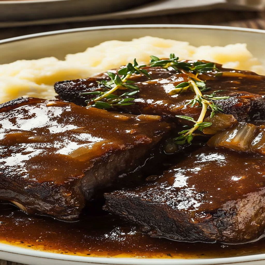 Experience the ultimate comfort food with these tender braised short ribs, slow-cooked in rich flavors for a satisfying meal perfect for any occasion.