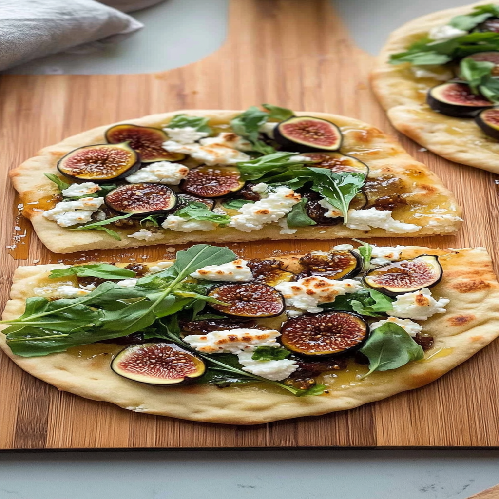 In summary, Fig & Goat Cheese Flatbread with Honey is a delightful dish that combines sweet figs and creamy goat cheese atop a crispy flatbread base. With simple ingredients and quick preparation time, it’s perfect for any occasion. Whether served as an appetizer or a snack, this flatbread offers a harmonious blend of flavors that everyone will enjoy. Don’t hesitate to customize it further by trying different cheeses or toppings!