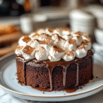 Indulge in this rich and velvety hot chocolate cake topped with fluffy marshmallow, perfect for winter nights or cozy gatherings.