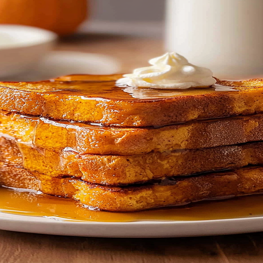 In conclusion, Pumpkin French Toast is an easy yet impressive breakfast option that blends seasonal flavors with classic comfort food. By using simple ingredients like pumpkin puree and spices, you create a warm and satisfying meal that everyone will love. Whether you’re preparing it for a special occasion or a cozy weekend brunch, this recipe promises to delight your taste buds while providing nutritional benefits. Enjoy this fall favorite with your choice of toppings for an unforgettable experience!