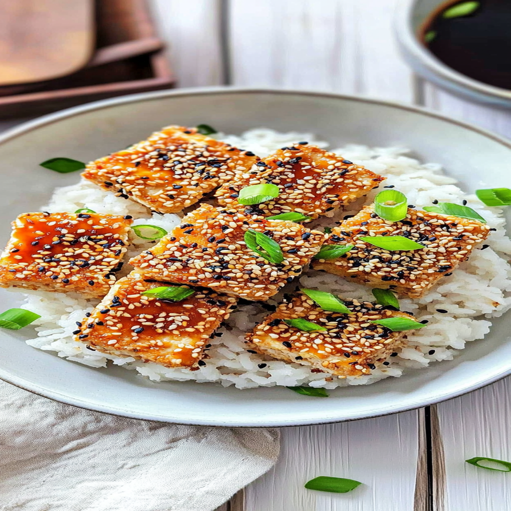 Experience a tropical delight with crispy sesame-crusted tofu served over creamy coconut rice, perfect for weeknight dinners or impressing guests.