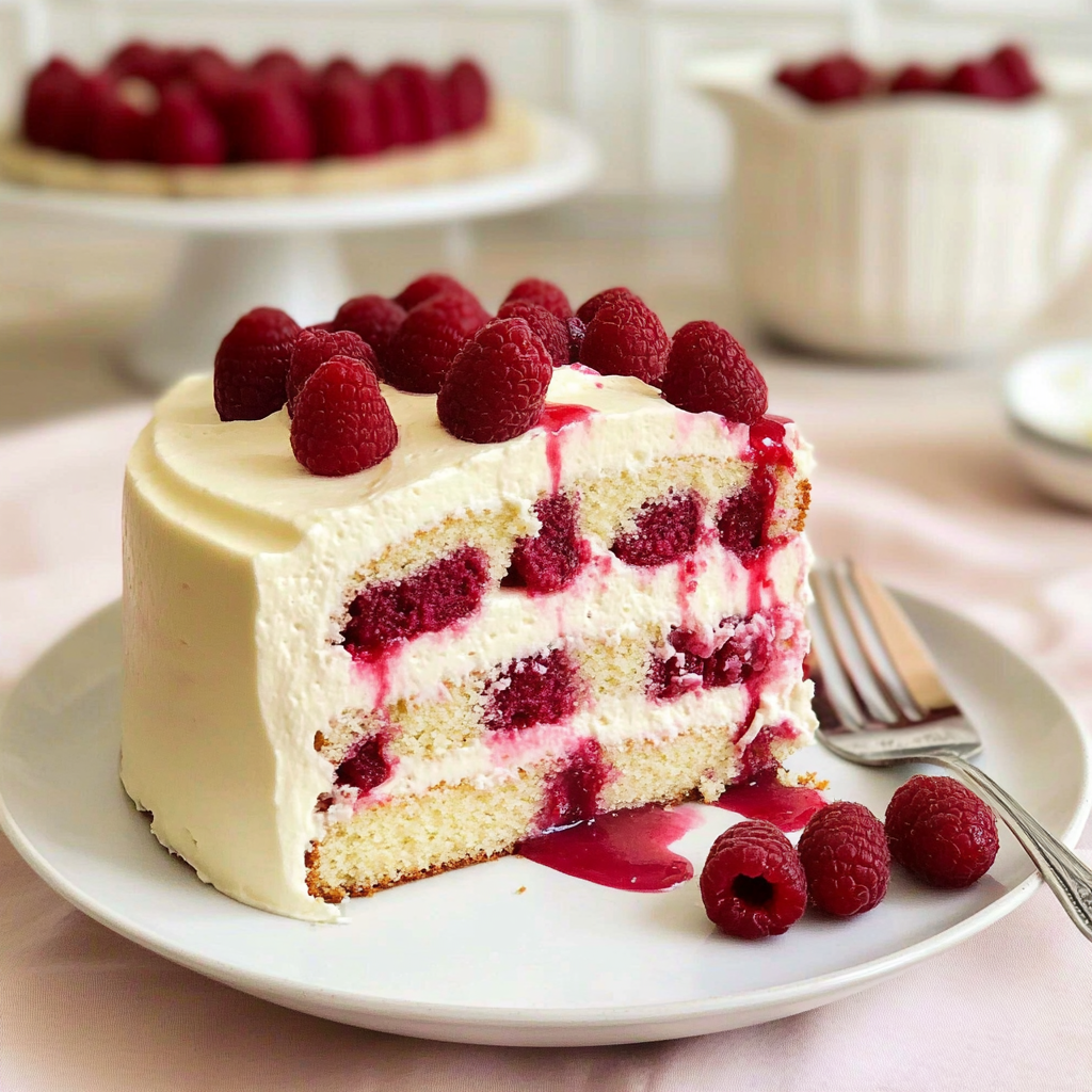 Indulge in the heavenly layers of White Chocolate Raspberry Dream Cake, where creamy white chocolate meets tart raspberries, creating a delightful dessert perfect for any occasion.
