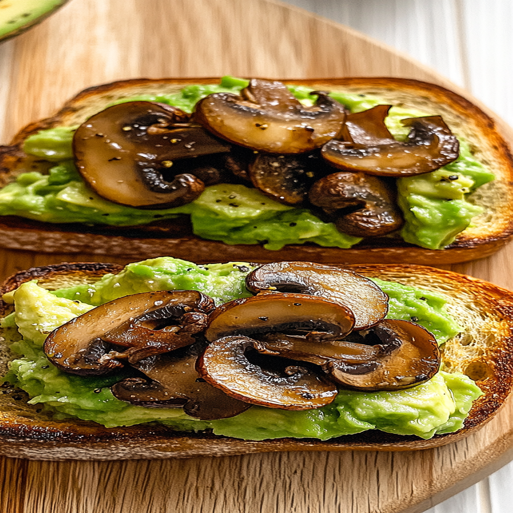 - Spread a generous layer of mashed avocado on each slice of toasted bread. Top with sautéed mushrooms.